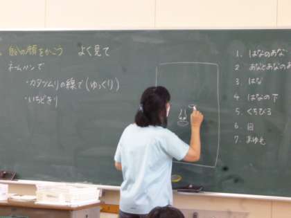図工で、鏡を見ながら自分の顔をかきました。