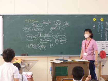 ウェビングマップを書くことで、お年よりや体が不自由な人の中には、手足が不自由な人、目が見えない人など、いろいろな人がいて、それぞれに違った支援が必要であることが分かりますね。