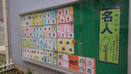 子どもたち一人ひとりが考えた「名人掲示板」。
