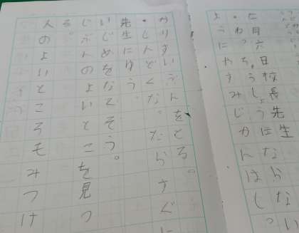2年生では、校長先生の話を振り返り、感じたことをノートに書きました。