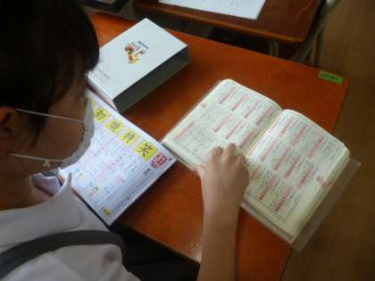 辞典を使って、新出漢字が使われていることば等を調べています。