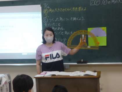 子どもたちは、初めて使う分度器に興味津々です!