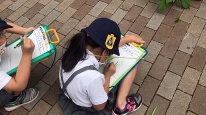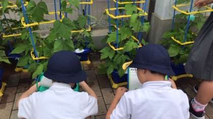 1年生の生活で、あさがおの観察の記録をつけています。