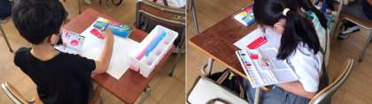 今日は赤色を枠の中に塗り進めていました。初めての経験とは思えないぐらいみんな上手に塗り進めることができていましたね。