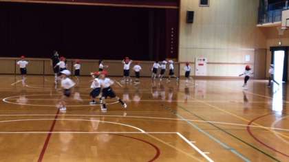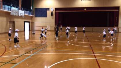 1年生の体育で、いろいろな動きに挑戦しています。