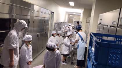 昨日から、給食室まで当番の人たちが給食を取りに来ています。入り口で給食調理員さんに感謝の気持ちを伝え、各係が牛乳やおかずなどを取りに行きます。食器や大おかずは本当に重たいですね。