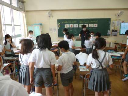 “Hi!”や“Hello!”とみんな積極的に声を掛け合うことができるようになってきています。