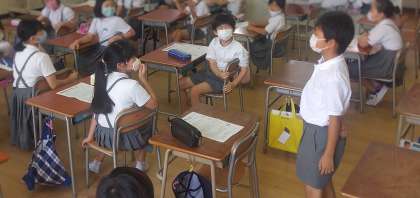 小学生は地域のお友達が集まって自己紹介をしたり通学の時の話し合いをするなどを行っています。