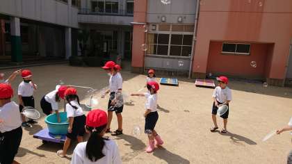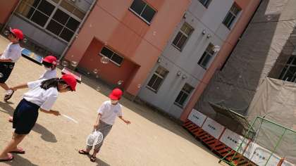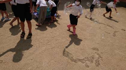 “水遊び”で笑顔!笑顔! 〜 1年生(^^)