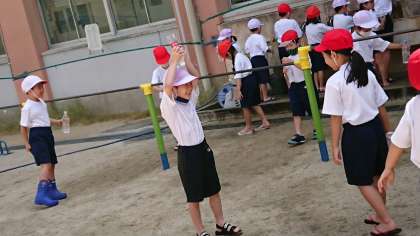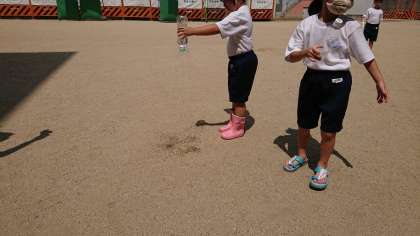 “水遊び”で笑顔!笑顔! 〜 1年生(^^)