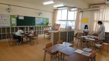 日本語指導が必要な子どもたちのために、今年度より設置した日本語指導教室。今日も子どもたちが、先生と一緒に学んでいます。