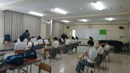 吹奏楽部では久しぶりにみんなで音を合わせています。