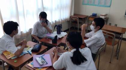 グループで問題を解き、ゲーム感覚で学習内容を確認していきました。