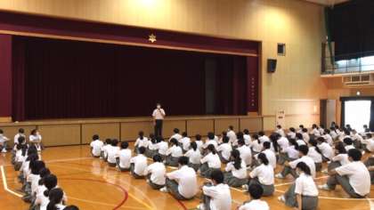 月曜日は中学校と小学校に分かれて集会と朝会を行います。