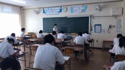 中学生が課題テストに取り組んでいます。1学期末に実施できなかった、音楽、技術・家庭、美術のテストです。