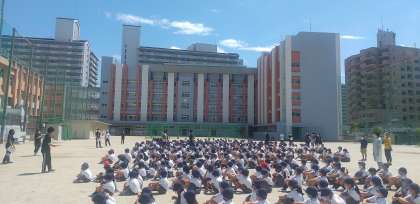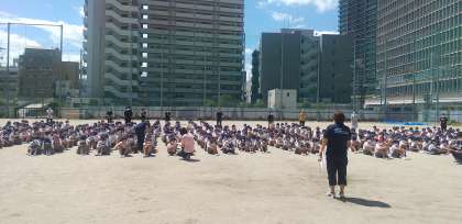 小学校の児童の皆さんはしとても真剣な表情で駆け足でグラウンドに集合していました。