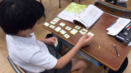 どうすれば数えやすくなるのかを考え、ばらばらになったカードを種類別に整理していきます。