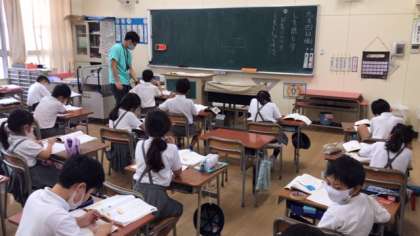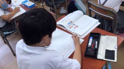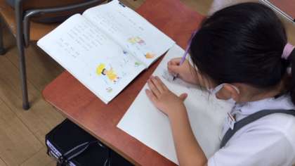 お気に入りの詩をそれぞれ選び、集中してプリントに書き写していきます。