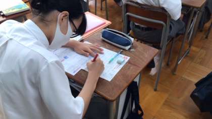 7年生の国語で、空中ブランコ乗りのキキの作品のまとめの問題演習をしています。