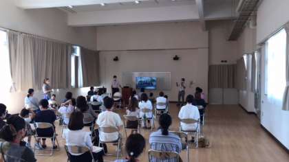10:45から新小学生1年生、中学1年生の保護者の皆様を対象に、交流スペースで学校説明会を実施しました。
