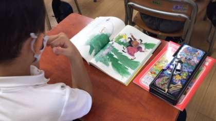 1年生の国語で、「おおきなかぶ」の学習をしています。