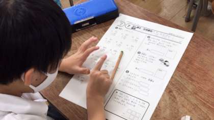 2年生の算数で、くり下がりのあるひき算の筆算に取り組んでいます。