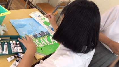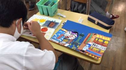 見本を見ながら、濃淡などに気を付けて色塗りを進めていました。