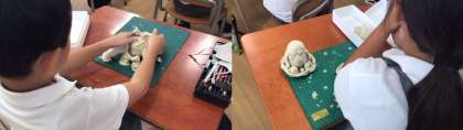 1年生が、ねんどで作品づくりをしています。