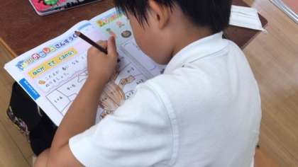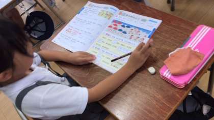 1年生の算数で、これまでに習ったたし算・ひき算の問題演習に取り組んでいました。難しい問題もありましたが、しっかりと考えることができました。