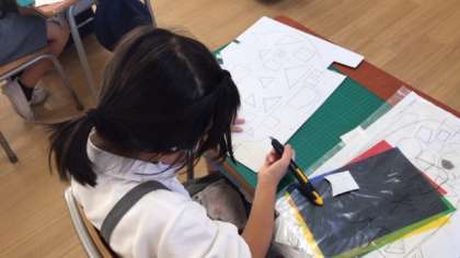 今日はカッターナイフの使い方を学習し、実際に作業を進めていました。とても集中して取り組むことができていましたね。