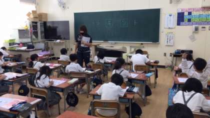 1年生の国語で、カタカナの練習をしています。とても良い姿勢で取り組むことができていました!