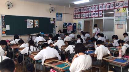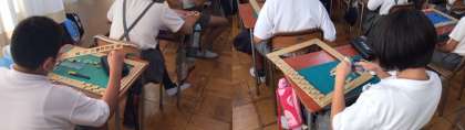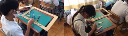 6年生の図工で、ダンボールを使って額縁作りに挑戦しています。