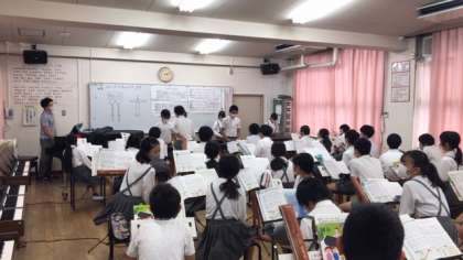 6年生の音楽で、中学校の先生が授業をしてくれています。