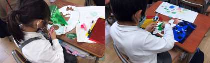 カッターで切る作業が終わり、セロファンを貼る工程に進んでいる人が出てきました。