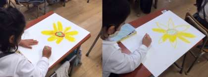 細かいところまでしっかりと観察し、種の部分もたくさんの色を使い分けながらかき進めていました。