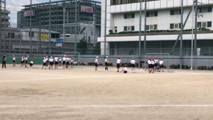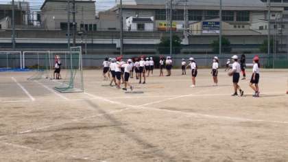 今日はミニゴールを準備し、ゴールに向かってポイントからボールを投げ込んでいました。