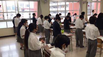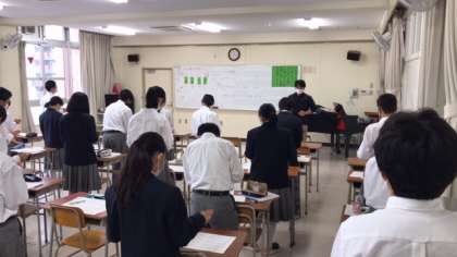 7年生の音楽で、「リズムの重なりを楽しもう」というテーマで学習しています。今日は手拍子で、とても難しいリズムの曲に挑戦していました。