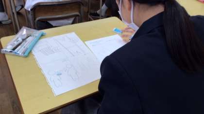 今日は、それぞれデザインを考えるところからスタートです。校内に掲示できるよう、色々なアイデアをお互いに共有していました。
