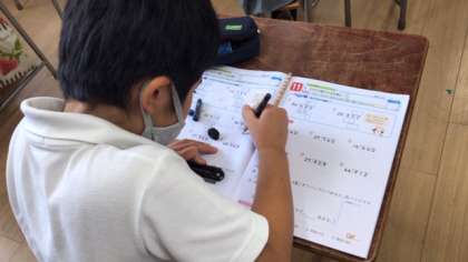 4年生の算数でわり算の学習をがんばっています。