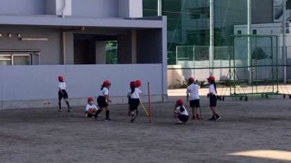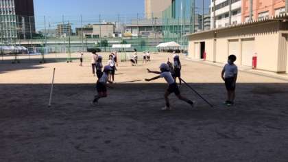 棒が倒れないよう、2人でタイミングを合わせて協力します。バランス調整の力が試されます。