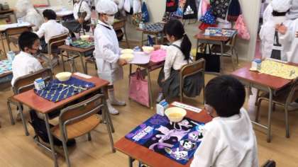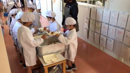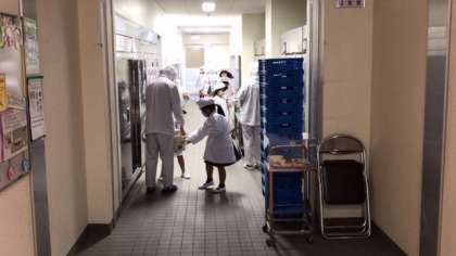 今日のメニューは、まぐろのオーロラ煮、ベーコンとじゃがいものスープ、きゅうりとコーンのゆずドレッシング、パン、牛乳です。