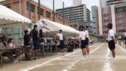 いろいろな制限がある中で、例年とはちがうプログラムで実施することになりました。どの生徒もどんな場面でも、前向きに楽しもうと笑顔を見せてくれたことが印象に残った特別な運動会となりました。