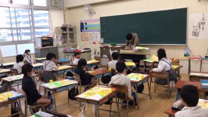 1年生が図工の授業で作品作りをしています。
