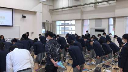 9年生の進路講話で興国高校から講師の先生にお越しいただき、面接練習を実施していただきました。