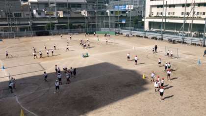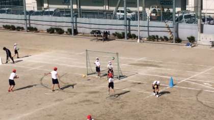 6年生がボール運動の単元で、ハンドボールに取り組んでいます。