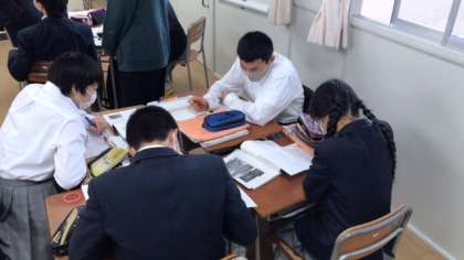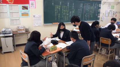 おくのほそ道の平泉で、松尾芭蕉が景色を見て涙を流した心情を本文を根拠にしながら考えていきます。個人の意見をグループで共有しながら考えを深めていきました。