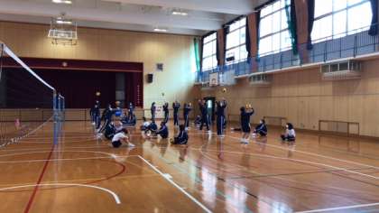 男子はサッカー、女子はバレーボールにそれぞれ取り組んでいます。それぞれ個人の基礎技術をしっかりと固めてからチームプレーに移ります。