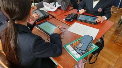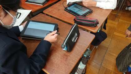 タブレットを活用しながら、みんなで考えていきます。