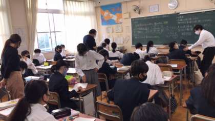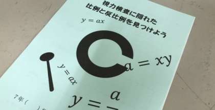 比例・反比例を身の回りの事象に活用する問題で、ランドルト環の大きさと距離と視力との関係について考えました。
