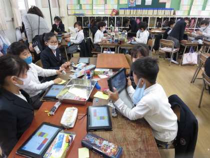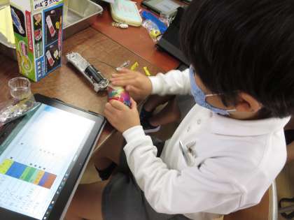 各班で実験を行い、実験の様子の動画をタブレットで撮影し、記録に残しました。班の友だちと協力して、準備から片付けまで、きちんと出来ていましたね。